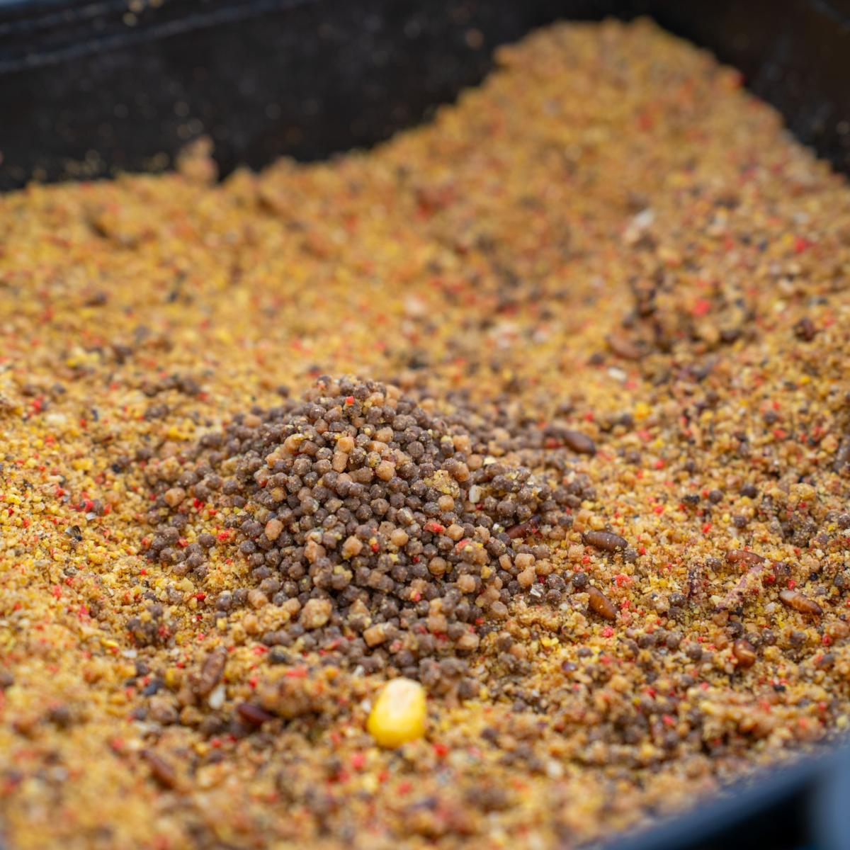 Ce mélange de couleur jaune avec une grosse granulométrie et un pouvoir collant élevé possède néanmoins la caractéristique de travailler instantanément une fois sur le fond grâce à ses composants. La composition idéale pour pêcher au feeder.