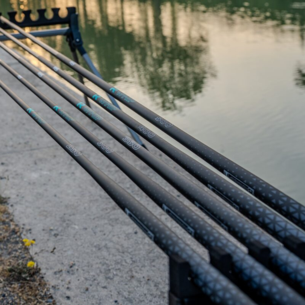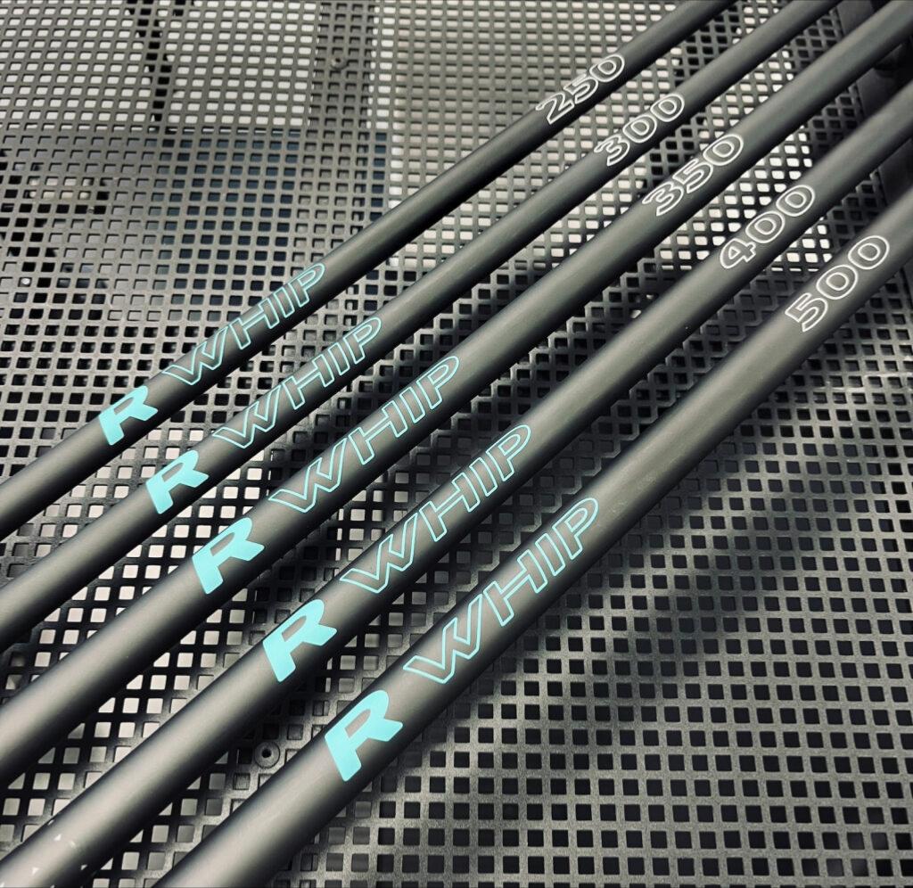 - R WHIP 250 – 4 sections, 54 g – 69,99 €. - R WHIP 300 – 4 sections, 60 g – 79,99 €. - R WHIP 350 – 5 sections, 78 g – 99,99 €. - R WHIP 400 – 5 sections, 84 g – 109,00 €. - R WHIP 500 – 6 sections, 114 g – 129,00 €. - Canne télescopique. - Pointe pleine en carbone Ø 0,7 mm. - Poignée ergonomique conique pour un meilleur confort et contrôle. - Carbone Japonais Haut Module Toray.