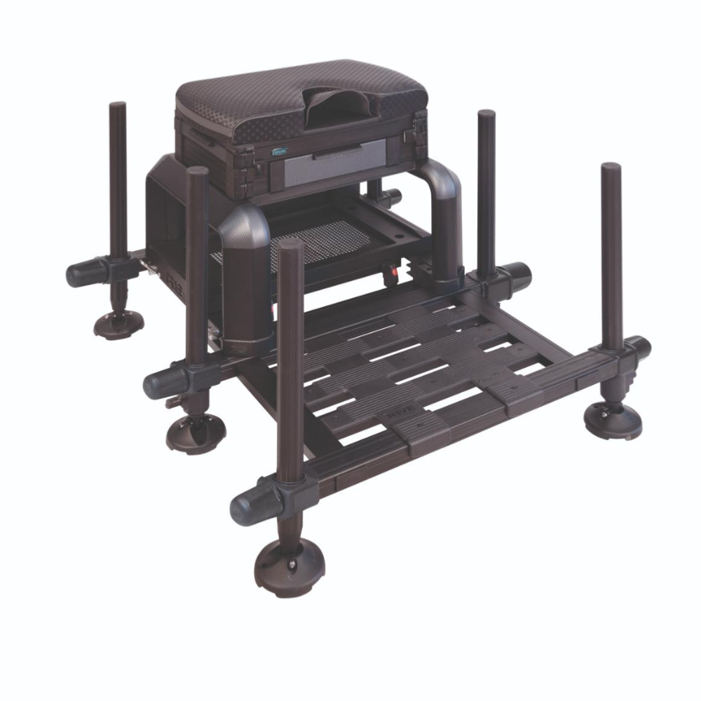 Confort, solidité et praticité en action – Coussin RS large et plus épais avec bloc talon intégré. – 4 pieds télescopiques (420 à 720 mm) D36 pour s’adapter à tous les terrains. – 2 pieds fixes de 420 mm D36. – Casiers, pieds et plateforme anodisés noirs : look sobre et moderne. – Livrée avec une housse de protection, pour une bonne protection lors du transport. – Poids total : 18 kg, pour une grande stabilité, durabilité et solidité.