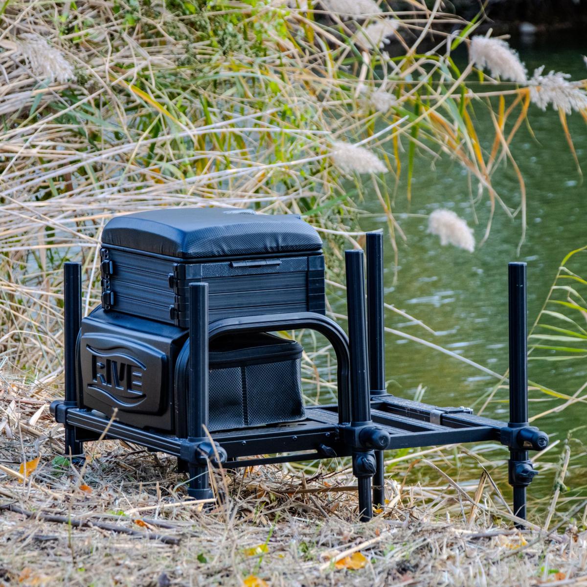 - Idéale pour les pêcheurs souhaitant une station complète, pratique et accessible. - Convient aux débutants comme aux pêcheurs expérimentés grâce à son excellent rapport qualité-prix. - Permet une installation rapide et stable sur tous types de berges grâce aux pieds télescopiques D36. - Compatible avec tous les accessoires RIVE, casiers, dessertes et supports D36.